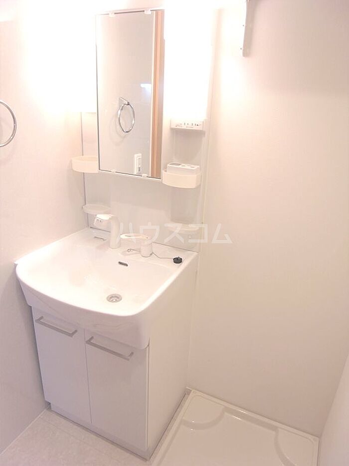 洗面化粧台を採用しているので、歯ブラシやドライヤーなどをまとめて収納できます。