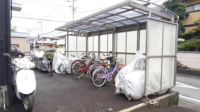 居住者用の駐輪場が付いている物件です。敷地内の駐車場にも空きがあり、駐車可能です。