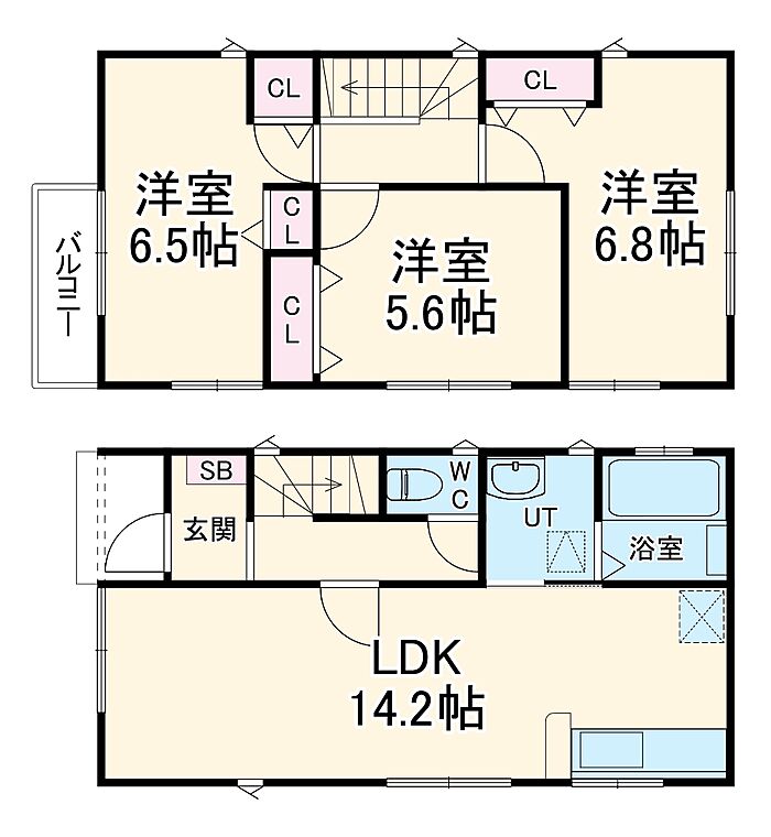 リビングダイニングキッチン 14.2帖)