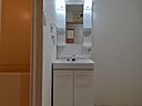 毎日の身支度を一箇所でできる洗面化粧台は、利便性が高いです。こちらの物件はマンションです。