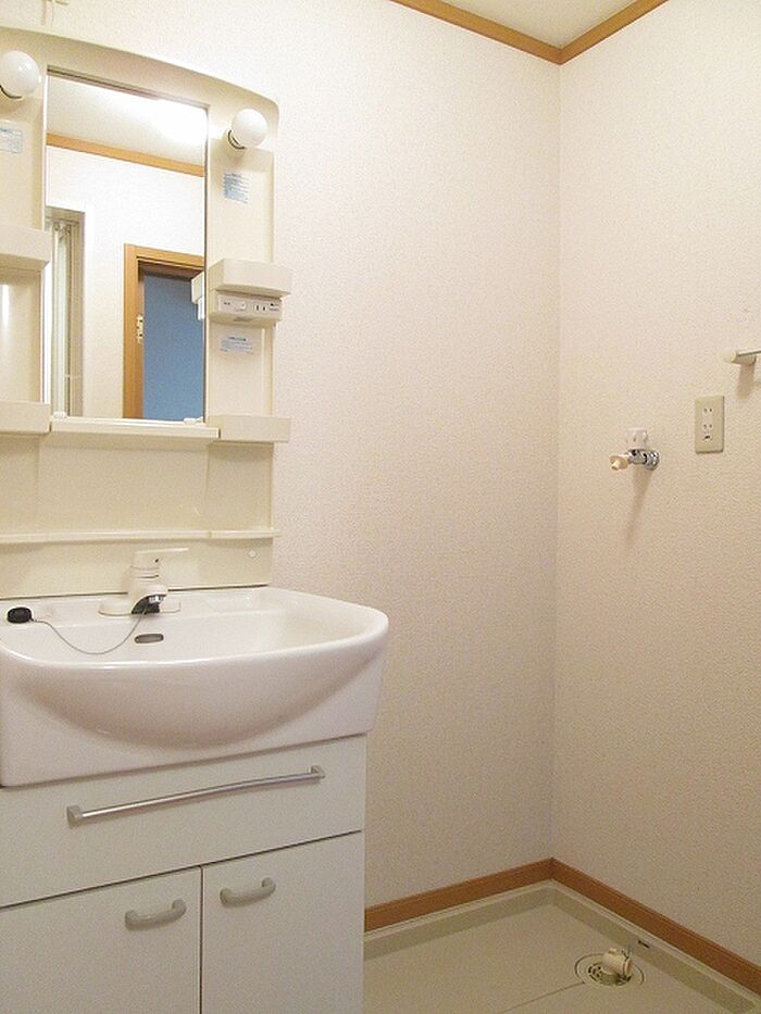 独立洗面台を備えているので、洗面台前で身支度をサッと整えられます。こちらの物件はアパートです。