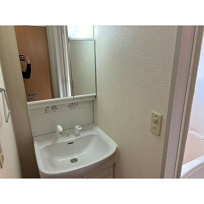化粧品や洗面道具といった小物をまとめて収納できる独立洗面台があります。駐輪場付きのアパートです。