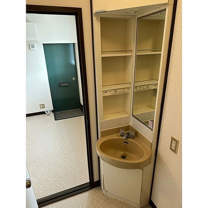 化粧品や洗面道具といった小物をまとめて収納できる独立洗面台があります。