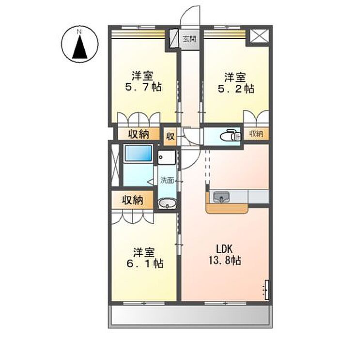 リビングダイニングキッチン 13.8帖)