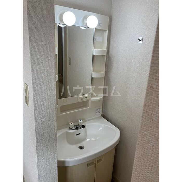 独立洗面台なので床が水で濡れたり鏡が曇ったりしにくく、清潔な状態を保ちやすくなっております。