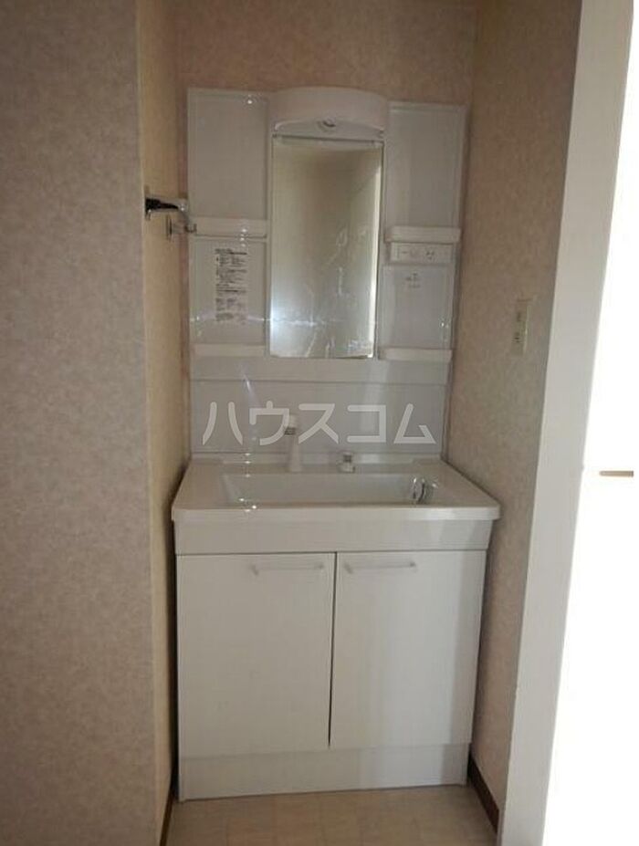 独立洗面台を備えているので、歯ブラシやドライヤーなどもまとめてスッキリ収納できます。