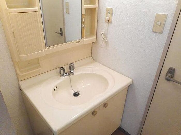 化粧品や洗面道具といった小物もスッキリまとめて収納できる独立洗面台が付いております。