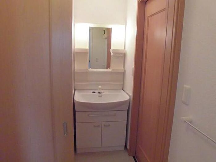洗面化粧台を備えているので、洗面台前で身支度をサッと整えられます。
