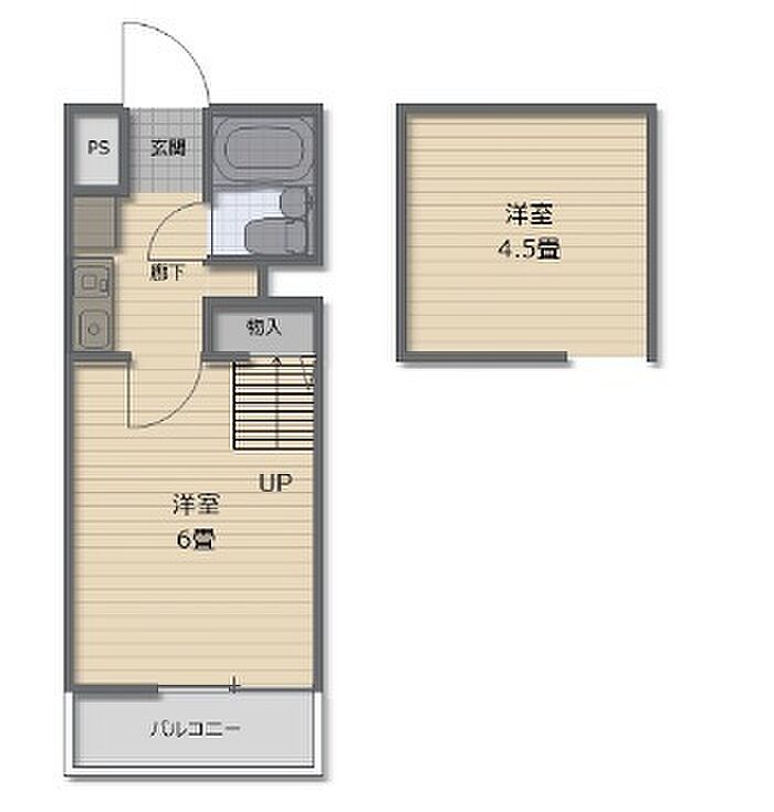 イエローハウス J 1K/2階