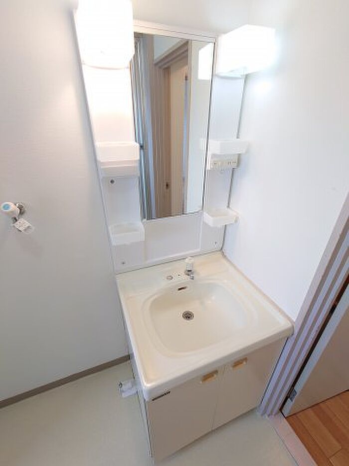 化粧品や洗面道具といった小物もスッキリまとめて収納できる独立洗面台を採用しています。