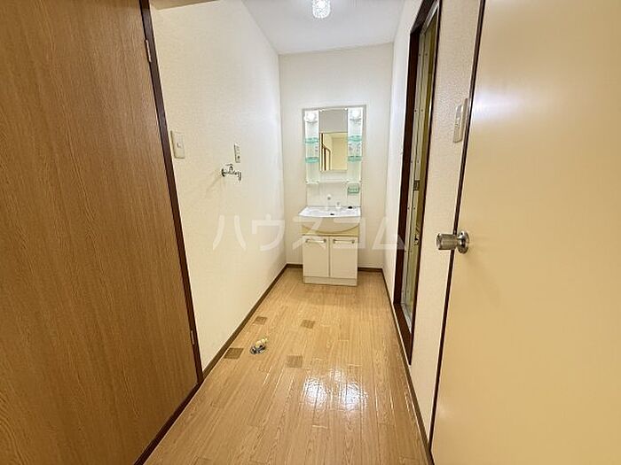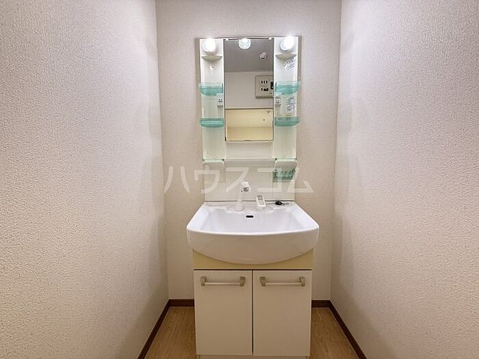 身だしなみのチェックができる、洗面化粧台があります。照明を買わなくて済む照明付きの物件です。
