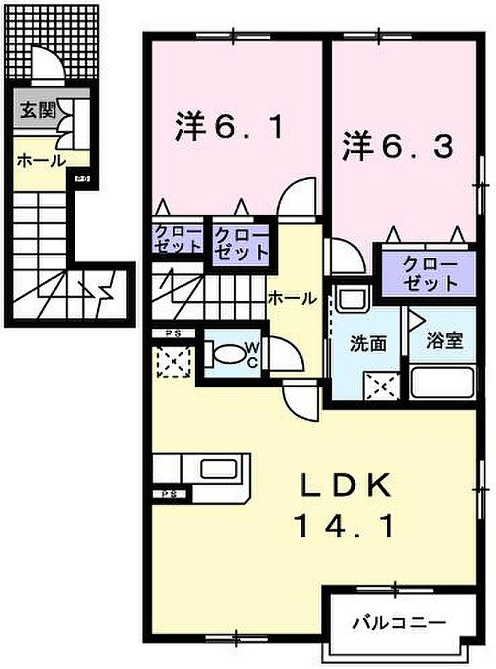 東久留米市下里2丁目 アパート 2LDK/2階