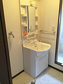 化粧品や洗面道具といった小物をまとめてスッキリ収納できる洗面化粧台が付いております。