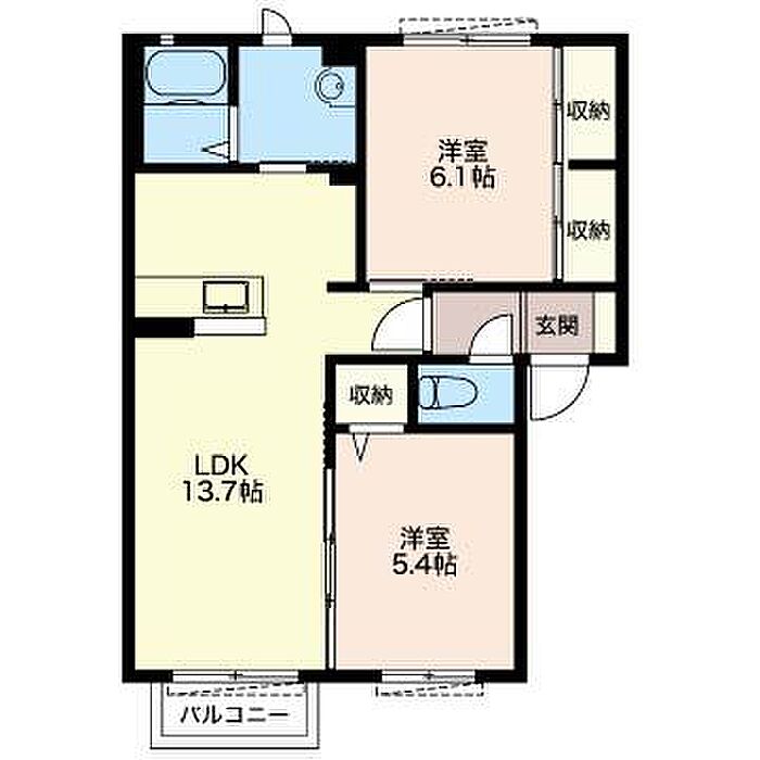 洋室5.4 洋室6.1 LDK13.7 ※1畳=1.62m2)
