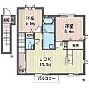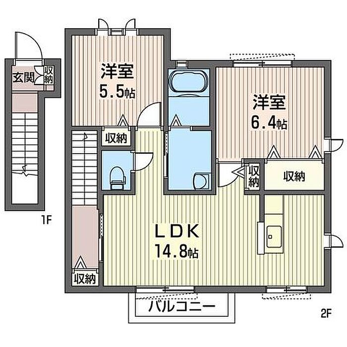 洋室6.4 洋室5.5 LDK14.8 ※1畳=1.62m2)