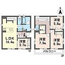 洋室7.9 洋室6.9 洋室5.6 洋室3.7 LDK14.4 ※1畳=1.62m2)