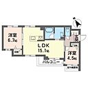 洋室6.7 洋室4.5 LDK15.1 ※1畳=1.62m2)