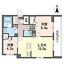 洋室6.4 洋室4.2 LDK13 ※1畳=1.62m2)
