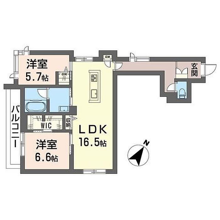 洋室6.6 洋室5.7 LDK16.5 ※1畳=1.62m2)