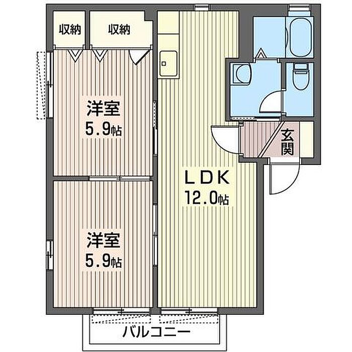 洋室5.9 洋室5.9 LDK12 ※1畳=1.62m2)