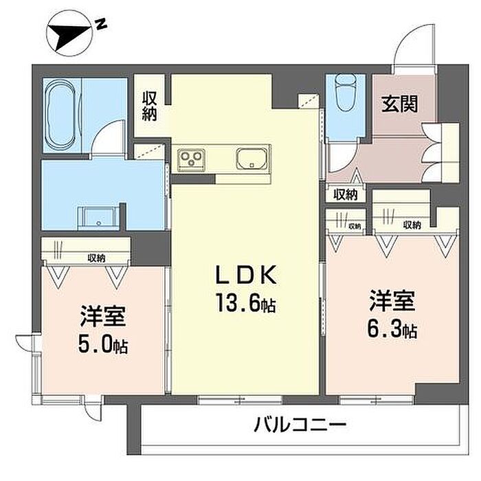 洋室6.3 洋室5 LDK13.6 ※1畳=1.62m2)