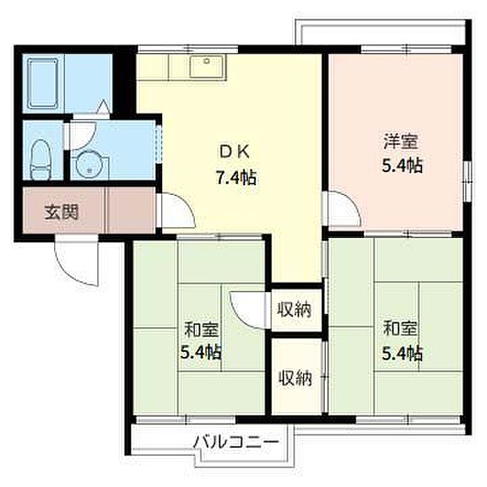 洋室5.4 和室5.4 和室5.4 DK7.4 ※1畳=1.62m2)