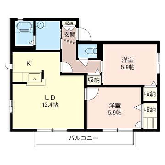 洋室5.9 洋室5.9 LDK12.4 ※1畳=1.62m2)