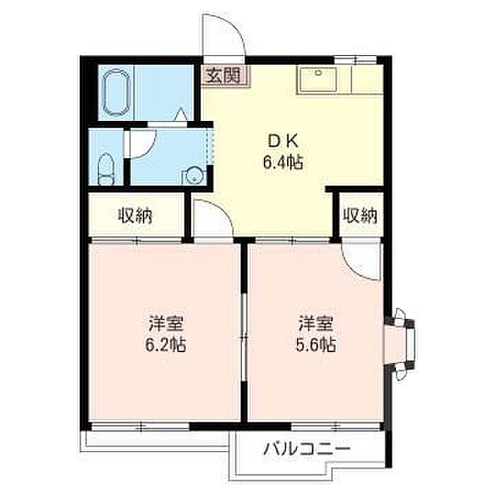 洋室6.2 洋室5.6 DK6.4 ※1畳=1.62m2)