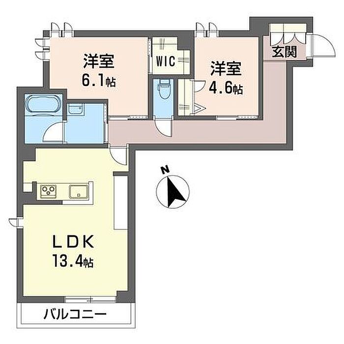 洋室6.1 洋室4.6 LDK13.4 ※1畳=1.62m2)