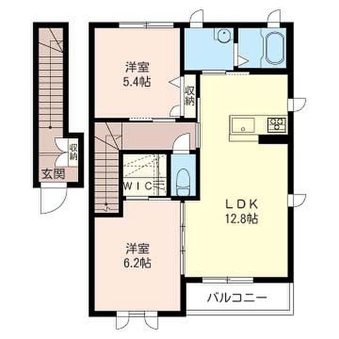 洋室6.2 洋室5.4 LDK12.8 ※1畳=1.62m2)