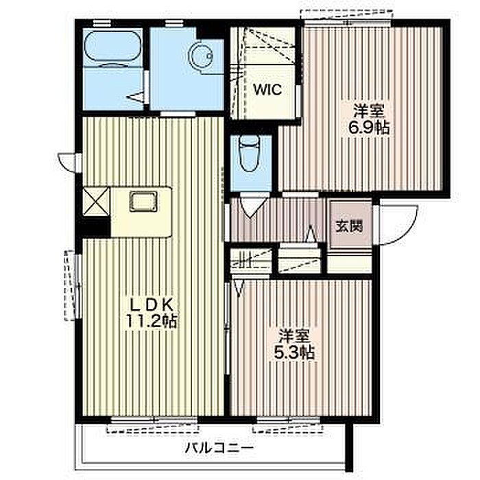 洋室6.9 洋室5.3 LDK11.2 ※1畳=1.62m2)