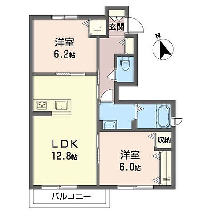 洋室6 洋室6.2 LDK12.8 ※1畳=1.62m2)