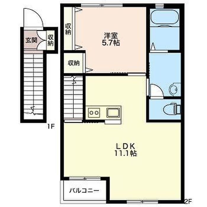 洋室5.7 LDK11.1 ※1畳=1.62m2)