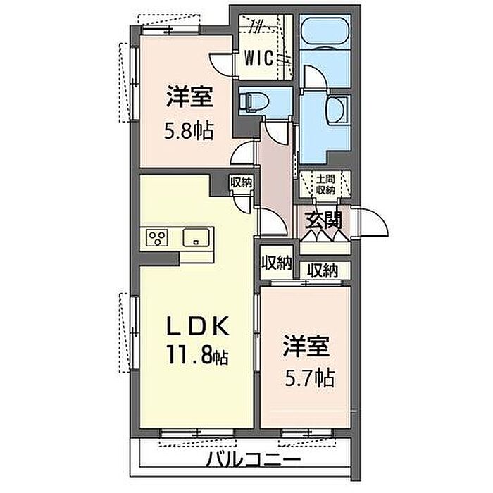LDK11.8 洋室5.7 洋室5.4 ※1畳=1.62m2)