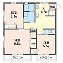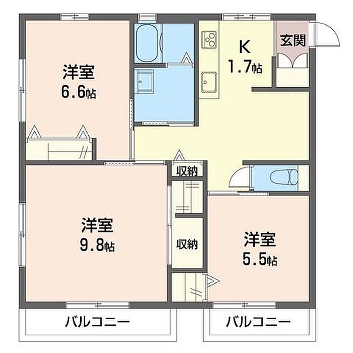 洋室7.4 洋室9.8 洋室6.6 K1.7 ※1畳=1.62m2)