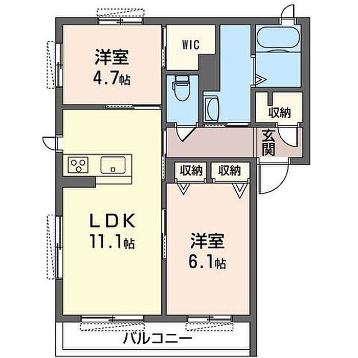 洋室6.1 洋室4.7 LDK11.1 ※1畳=1.62m2)