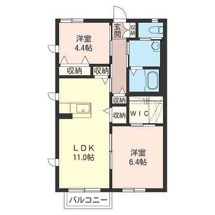 洋室6.4 洋室4.4 LDK11 ※1畳=1.62m2)