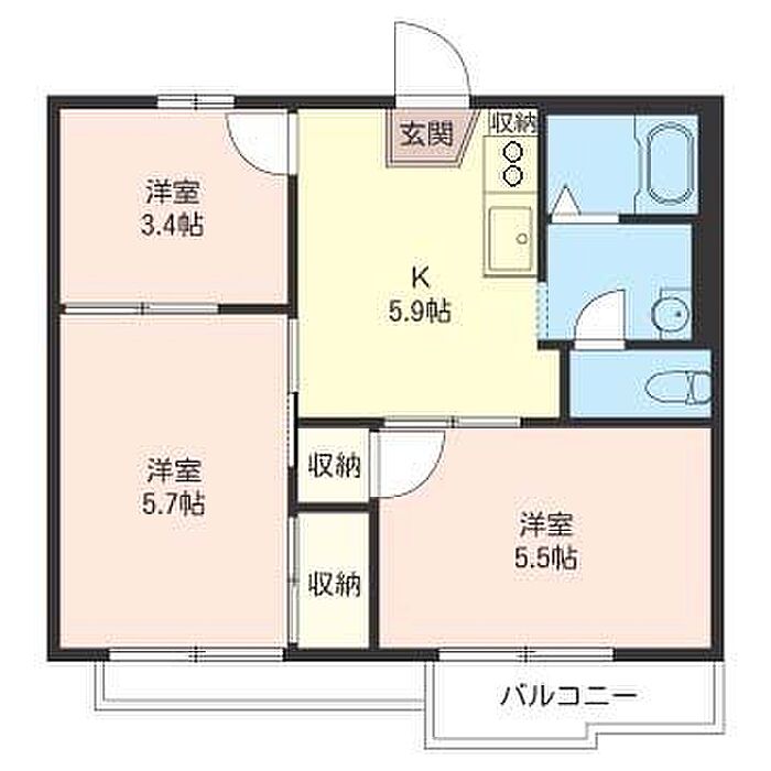 洋室3.4 洋室5.7 洋室5.5 K5.9 ※1畳=1.62m2)