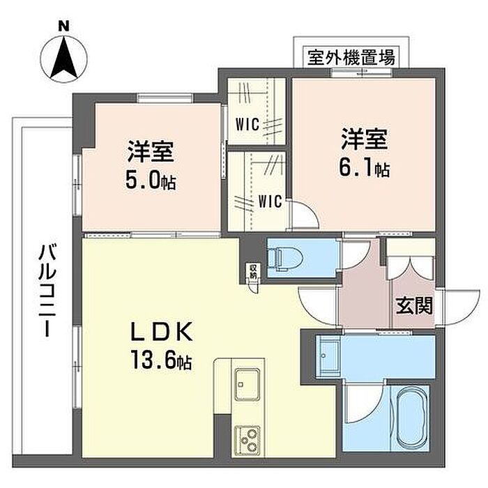 洋室6.1 洋室5 LDK13.6 ※1畳=1.62m2)