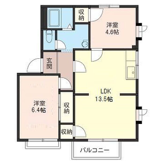 洋室4.6 洋室6.4 LDK13.5 ※1畳=1.62m2)
