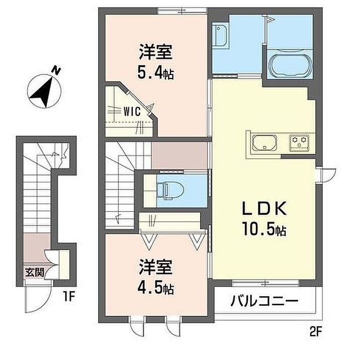 洋室5.4 洋室4.5 LDK10.5 ※1畳=1.62m2)