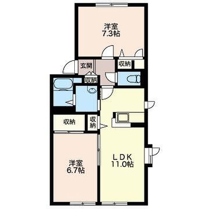 洋室7.3 洋室6.7 LDK11 ※1畳=1.62m2)