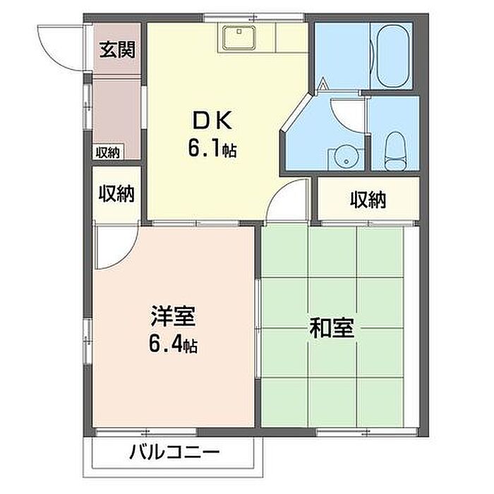 和室6.4 洋室6.4 DK6.1 ※1畳=1.62m2)