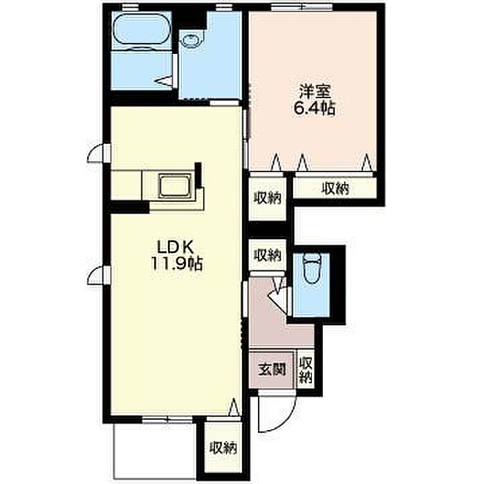 洋室6.4 LDK11.9 ※1畳=1.62m2)