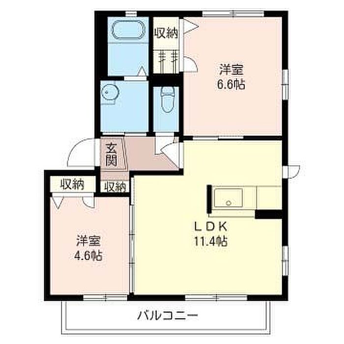 洋室6.6 洋室4.6 LDK11.4 ※1畳=1.62m2)
