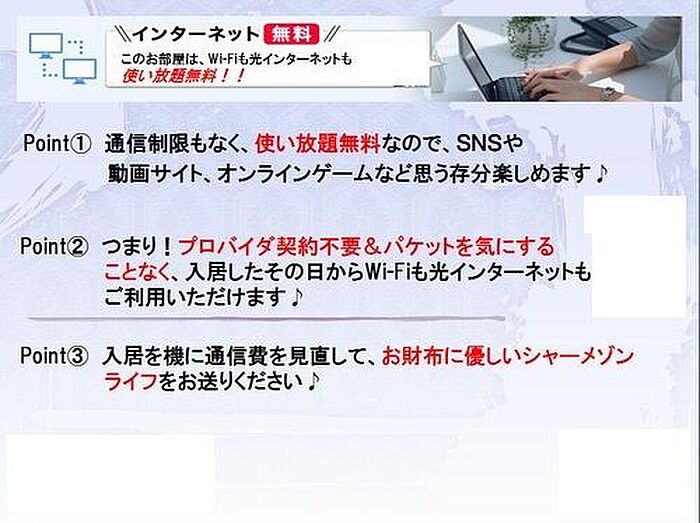 - インターネット使用料無料