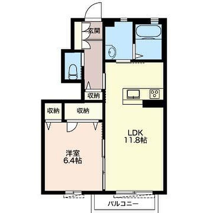 洋室6.4 LDK11.8 ※1畳=1.62m2)