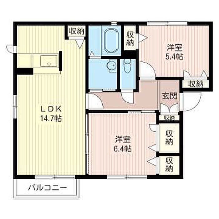 洋室6.4 洋室5.4 LDK14.7 ※1畳=1.62m2)