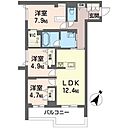 洋室7.9 洋室4.9 洋室4.7 LDK12.4 ※1畳=1.62m2)