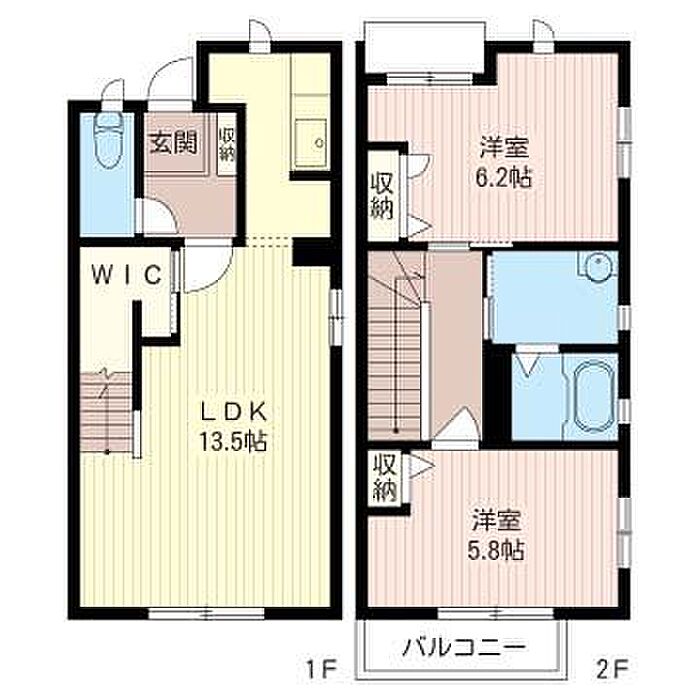 洋室5.8 洋室6.2 LDK13.5 ※1畳=1.62m2)